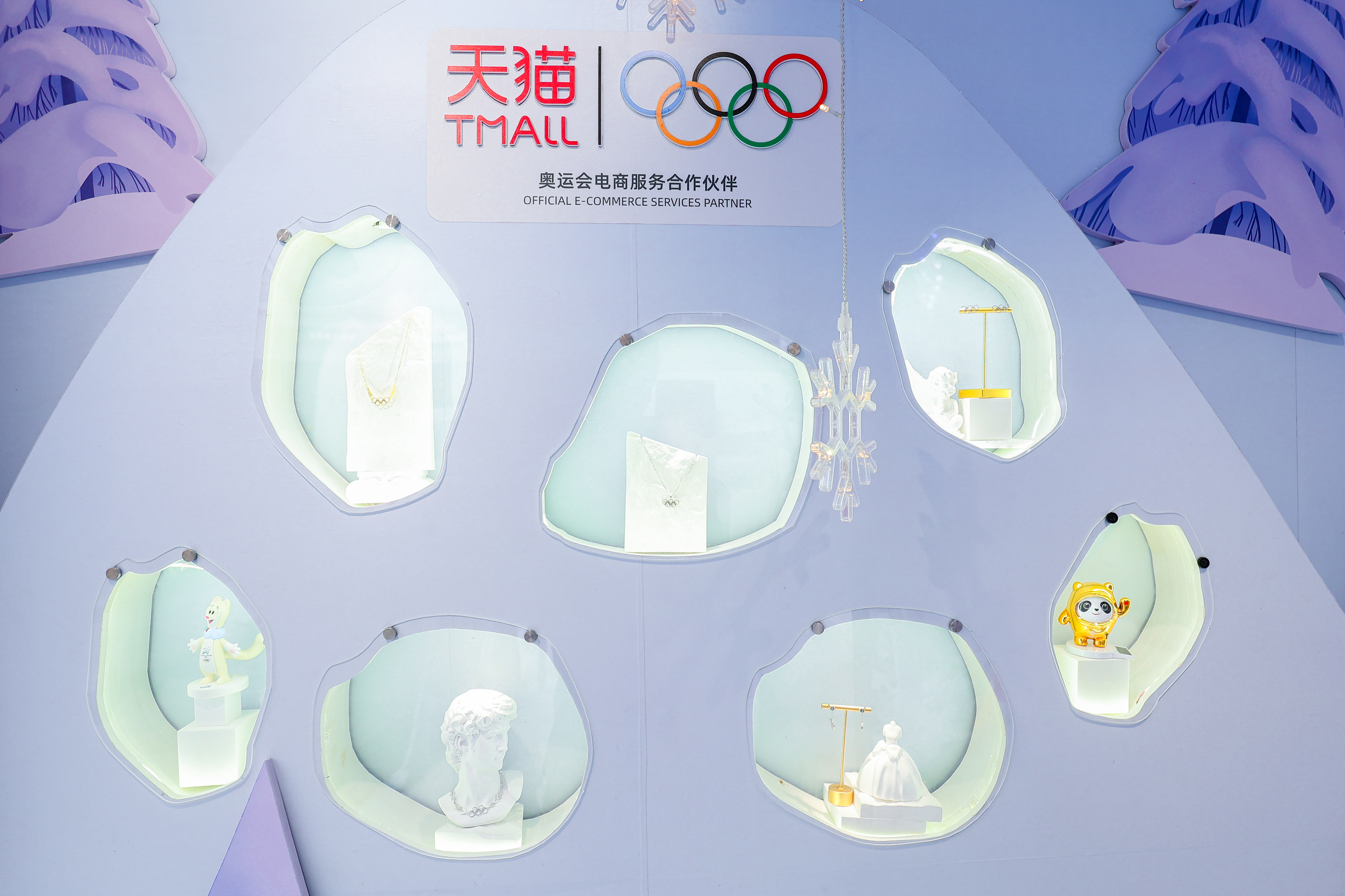 在“天猫双11超级发布”之米兰冬奥超级发布会上,冬奥冠军王濛宣布了米兰冬奥会吉祥物商品的全球首发。奥运冠军吴敏霞介绍了国际奥委会历史上首次推出的奥林匹克五环系列首饰,包括以五环为设计元素的项链、耳环、手链。